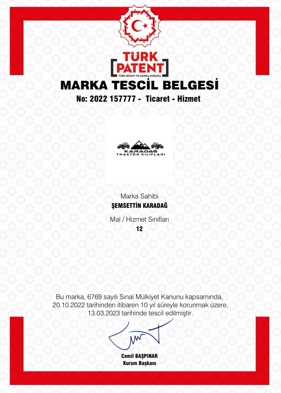 İmalathanemizde uzun yıllardır beraber olduğumuz profesyonel kadromuz ile Türk Patent Kurumu tarafından tescillenmiş PATENTLİ MARKAmıza ait  her marka ve model için traktör için kılıfı imalatımız devam etmektedir..